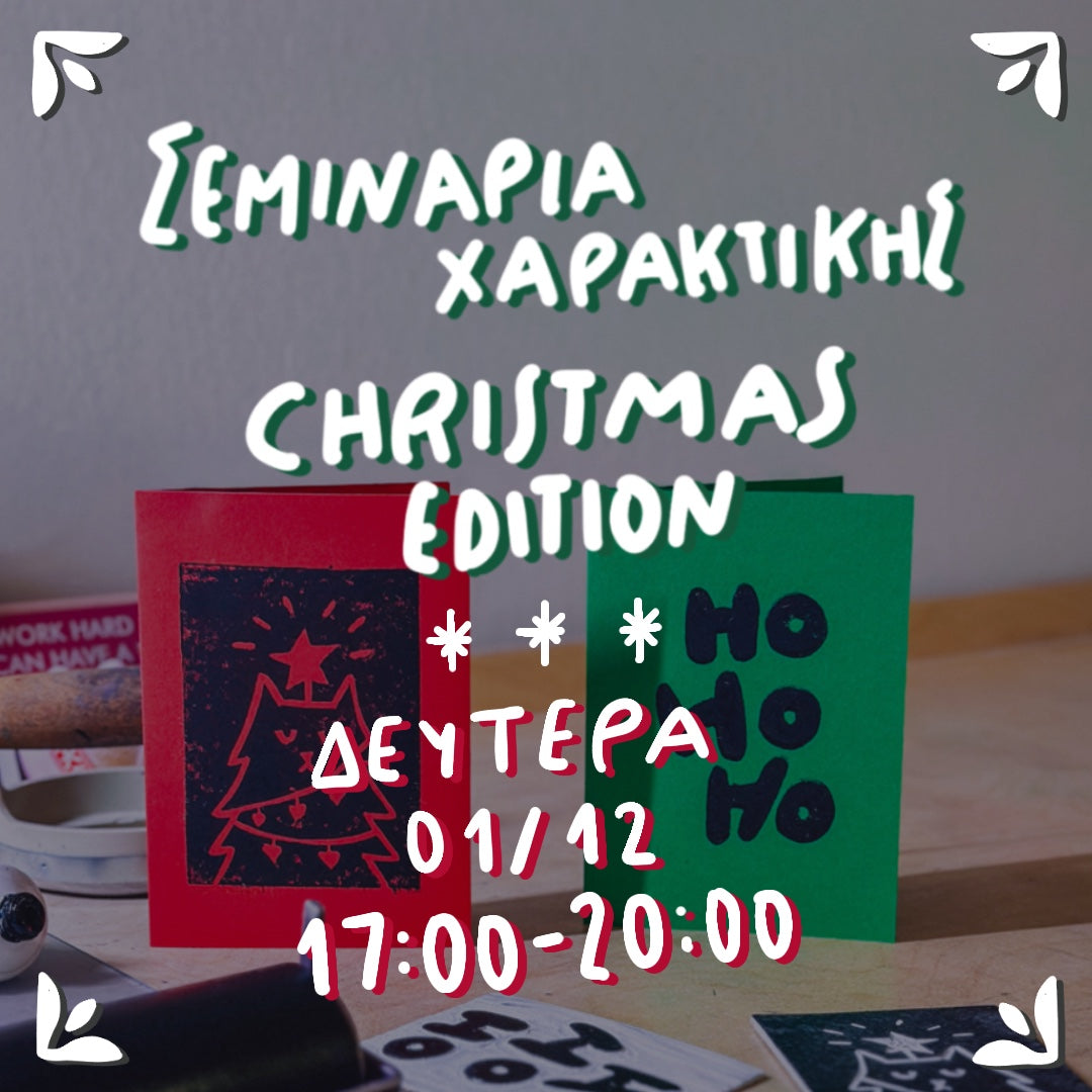 Το φυσικό μας κατάστημα μεταμορφώνεται σε εργαστήριο για τις ανάγκες των σεμιναρίων και σας περιμένει να γνωρίσετε από κοντά τις βασικές τεχνικές της χαρακτικής ενώ παράλληλα θα δημιουργήσετε τις δικές χριστουγεννιάτικες κάρτες.
