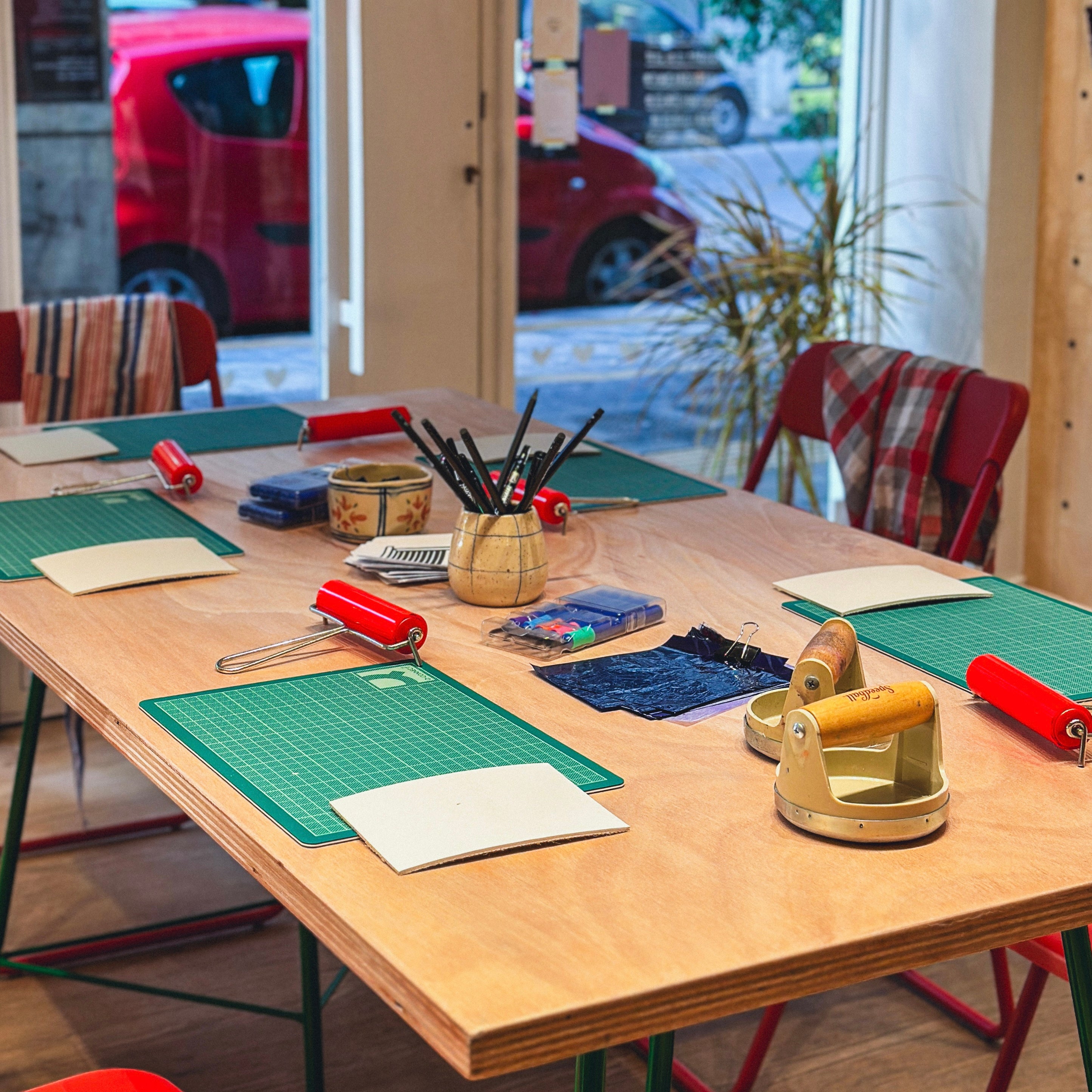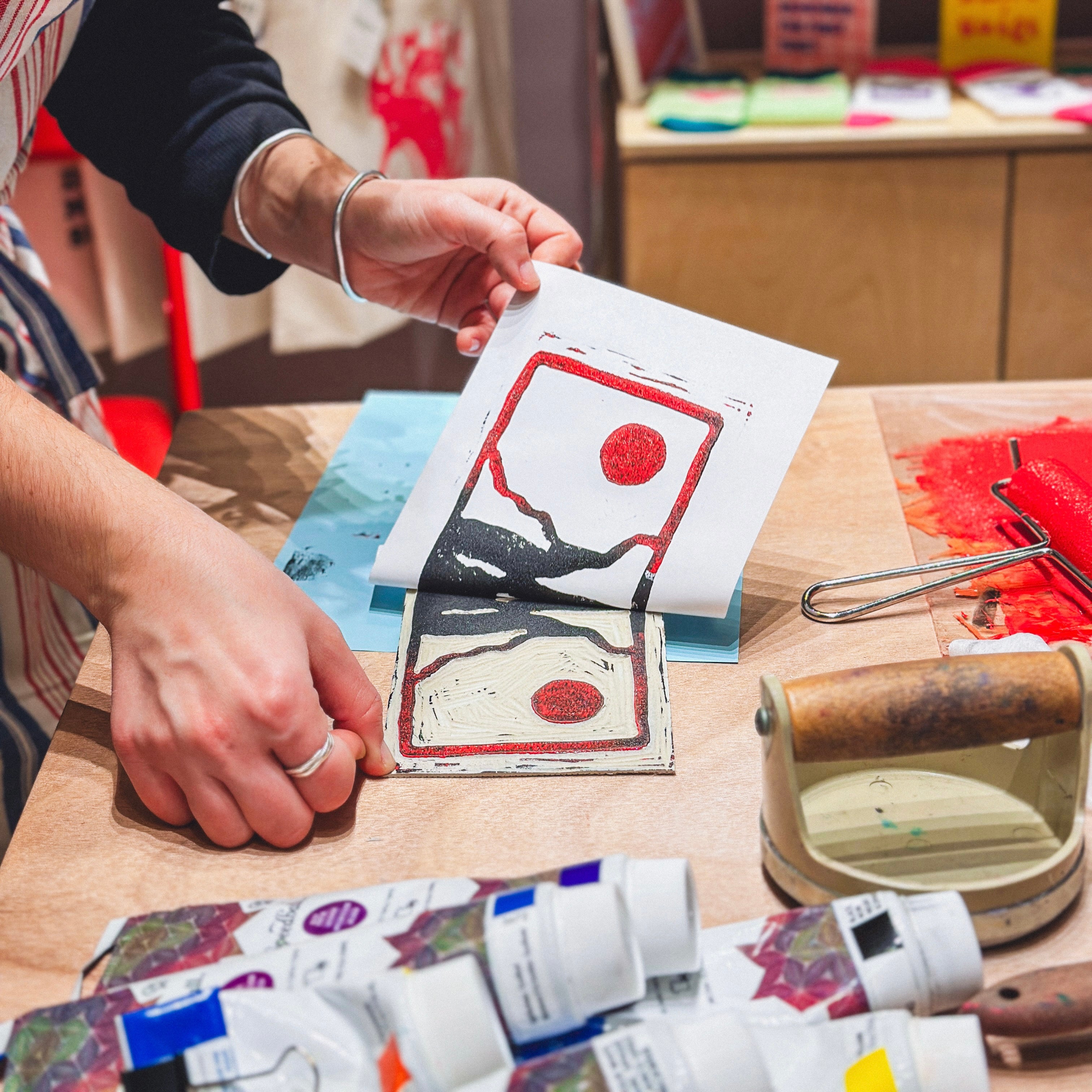 Το φυσικό μας κατάστημα μεταμορφώνεται σε εργαστήριο για τις ανάγκες των σεμιναρίων και σας περιμένει να γνωρίσετε από κοντά τις βασικές τεχνικές της χαρακτικής και να δημιουργήσετε το δικό σας πρωτότυπο έργο.
